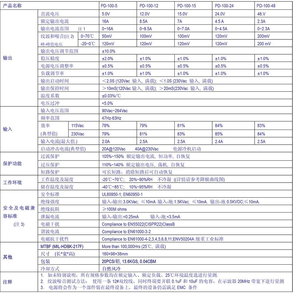 通用AC輸入/ Full range高效率,高可靠性輸出保護功能: 過流保護/過壓保護/短路保護超寬工作溫度范圍 (-20℃~70℃)電解電容全部使用105℃下 長壽命進口電解電容.100% 滿載老化測試